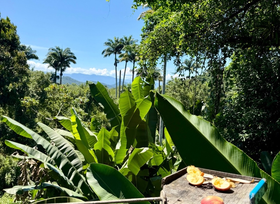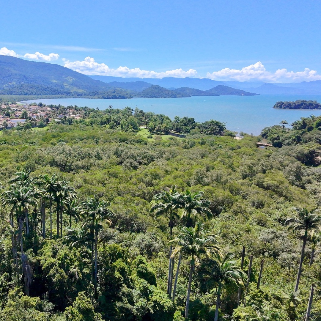 São 1.123m² de terreno, vista panorâmica permanente da mata e montanhas, total privacidade e a praia surgindo no horizonte 🌊