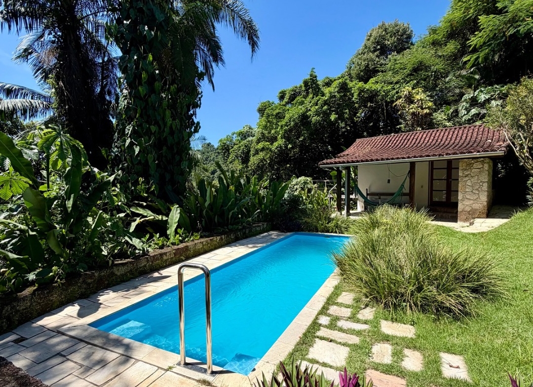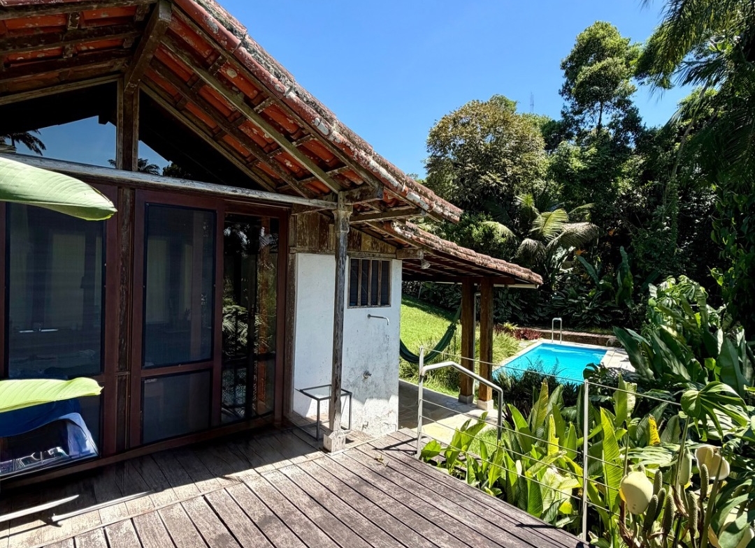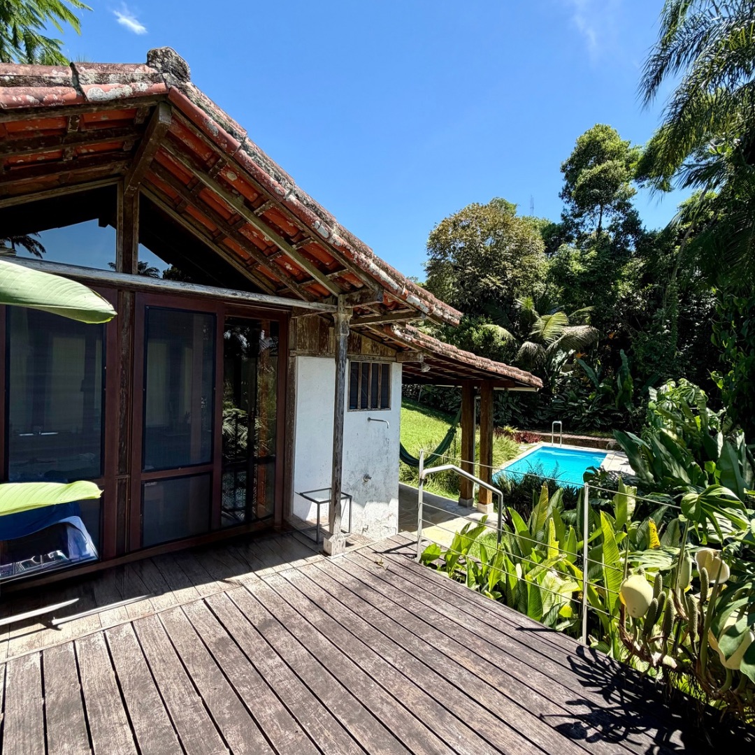 Arquitetura pensada para o clima da região, ventilação natural impecável, acabamentos em madeiras nobres e pedra São Tomé, além de piscina integrada ao paisagismo.