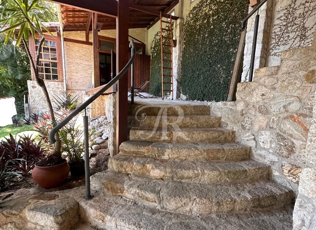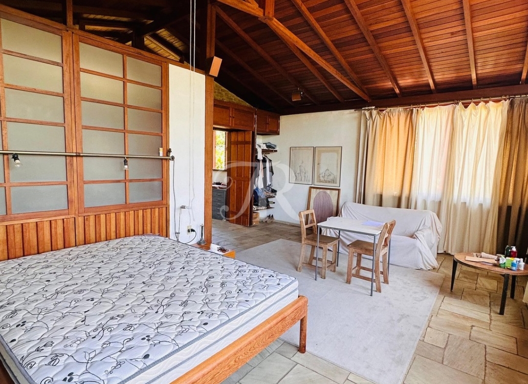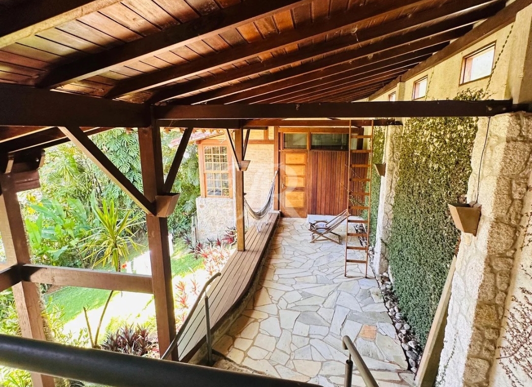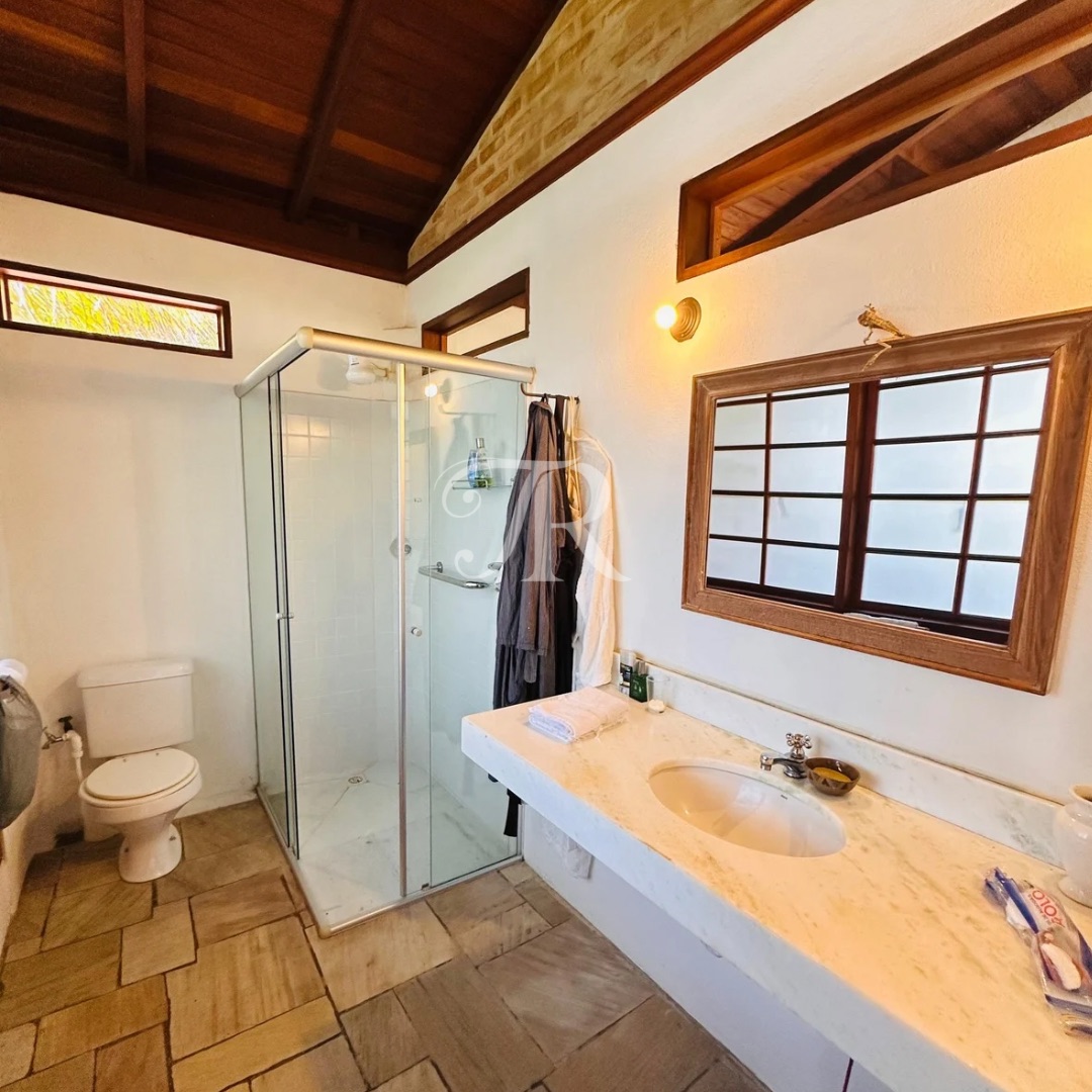 Arquitetura pensada para o clima da região, ventilação natural impecável, acabamentos em madeiras nobres e pedra São Tomé, além de piscina integrada ao paisagismo.